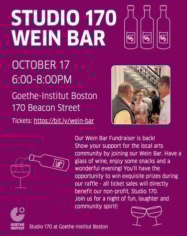 The Goethe-Institut Boston invites New England creatives from all fields of artistic practice to submit proposals for a Studio 170 Residency in 2025. Successful applicants will realize their proposed projects in our beautifully renovated space in Back Bay.